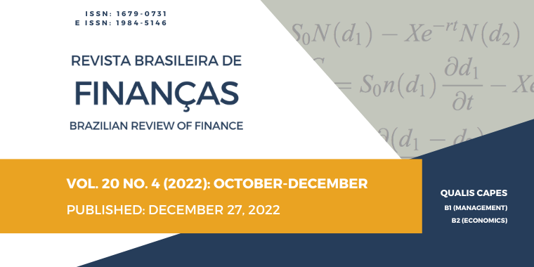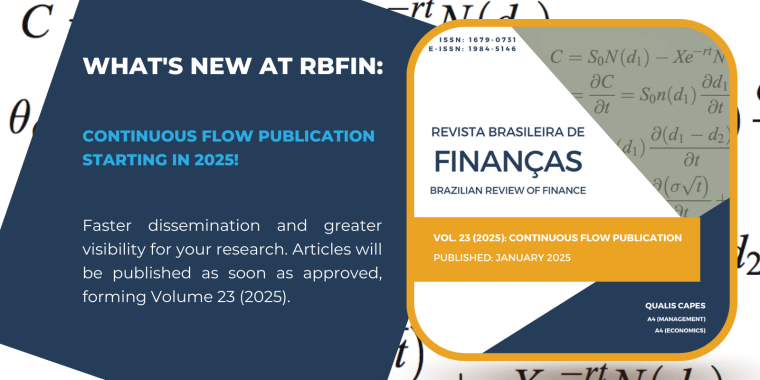 The Brazilian Review of Finance is the official publication of the Brazilian Society of Finance and aims at the progress and the dissemination of finance knowledge in Brazil through the publication of technical articles in all fields of research in finance and financial economics. The Brazilian Review of Finance is indexed by Econlit/JEL, RedALyC, Gale, Google Scholar, Portal Spell, and Fonte Academica, an electronic resource offered by EBSCO Publishing.